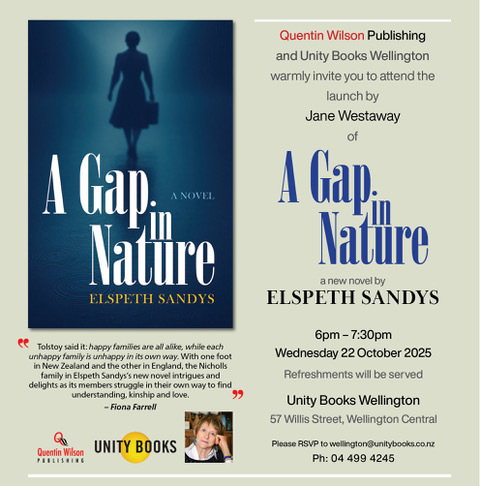 Elspeth Sandys was born in Timaru, New Zealand and educated at Otago and Auckland Universities. She moved to the UK in 1969. She has published 9 novels ('River Lines' was long listed for the Orange prize in 1996), two collections of short stories ('Standing in Line' won the Pen International, Elena Garro prize in 2003), two memoirs ('What Lies Beneath’ and ‘Casting Off’) and has written extensively for the BBC and RNZ. She has also worked in film and tv. Her stage plays have been performed in the UK and NZ. Her most recent play 'Body Politic' played to capacity houses at Circa Theatre Wellington in 2024. In July 2019 Elspeth published ‘A Communist in the Family: Searching for Rewi Alley’ a story that combines family memoir, biography, history and travelogue. Elspeth has held a number of literary fellowships and residencies, and in 2006 was awarded the ONZM for services to literature. She now lives in New Zealand.